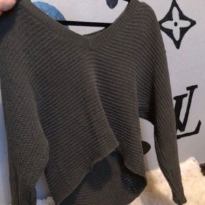super cute off the shoulder sweater from american eagle. army green color practically brand new.