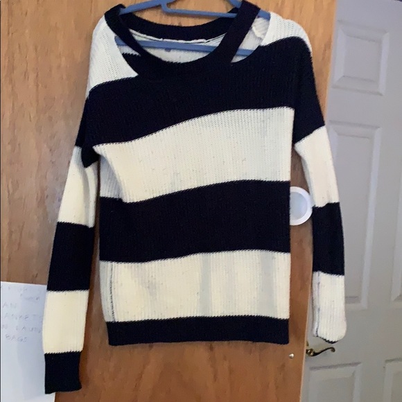 blue and white striped sweater with cut outs