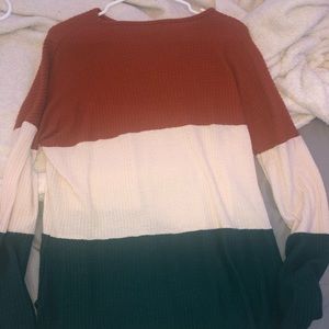 striped sweater, fits kind of long but you can tie it at the waist
