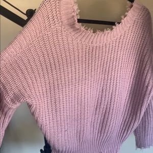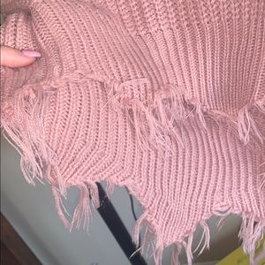 super fun, oversized, pink sweater with super cute fray details along the bottom and the neckline. can totally be dressed up for a dinner date or dressed down for a cozy day around the house!