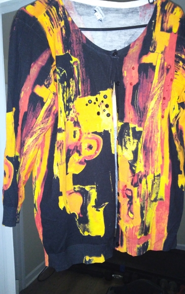 Art sweater very colorful no holes nice to wear with skirts jeans very artful 🥰
