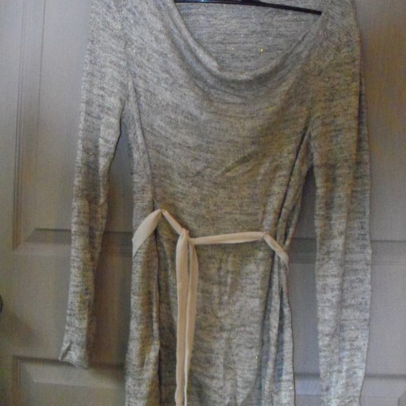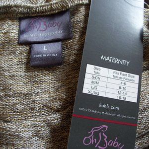 OH BABY MOTHERHOOD Sweater size large,, anyone could wear this ....very soft and flowy..gold/tan colors...silky belt