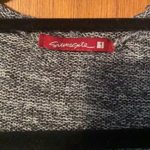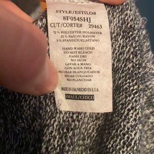 Dark grey & black hooded sweater. Great for fall - pair it with jeans & booties. Very soft, thin/light-weight material. Size small. No buttons, meant to be worn open. Worn a handful of times. Originally purchased from small boutique.