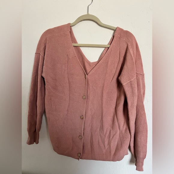 can be worn as a sweater by itself or as a cardigan sweater; button closure