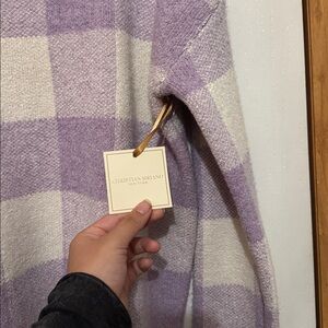 Light purple and white checkered sweater, very warm and not see through. It’s great condition no rips or stains. If you have any questions don’t hesitate to ask!