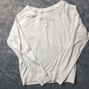 comfortable sweater with sequin detailing on the front. perfect because its not too much.