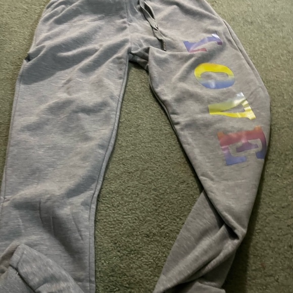 grey sweatpants with words