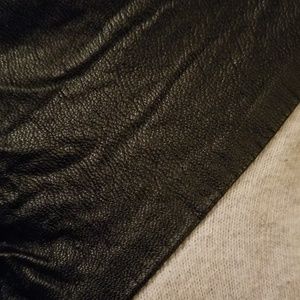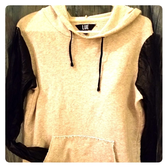 Very stylish and cute. For an edgy look in the evening. Faux leather sleeves. Light gray and no stains!