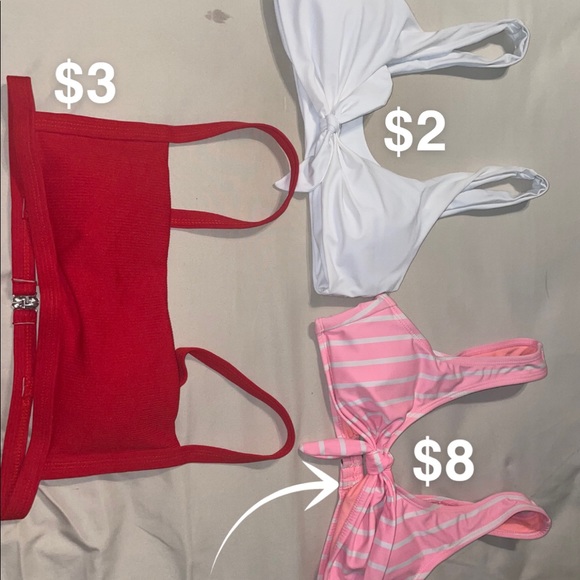 Hi! I am interested in the first white top (1st pic) and the red two-piece (last pic). What size are these? Thanks!