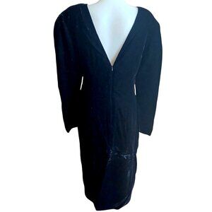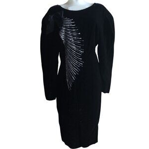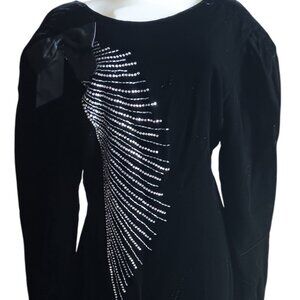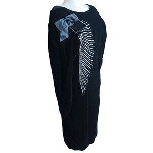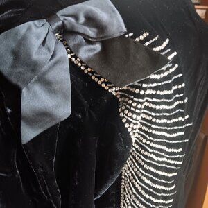 sz 10 Neiman Marcus Vintage Black Velvet Dress Rhinestones Bow Detail
