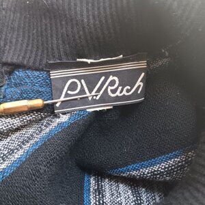 sz 13-14 Vintage New Wave Dress 1980's P.V. Rich Striped Knit Belted Made In USA
