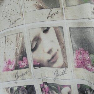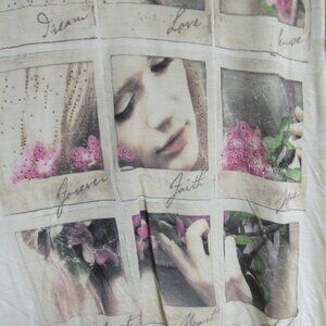 sz 2x White Blouse Open Back Flowy Womens tops sz 2x tops Plus Size Blouses Graphic Tops Blouse Rose Gold Glitter studs Pink Roses