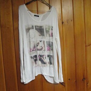 sz 2x White Blouse Open Back Flowy Womens tops sz 2x Plus Size Blouses Graphic