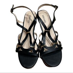 sz 4 Stevies black wedge heels NIB Sandals Gold