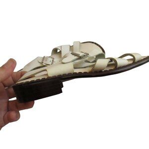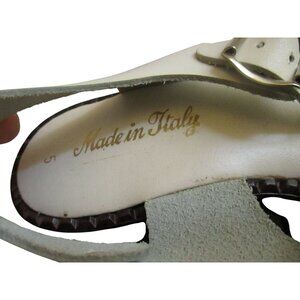 sz 5 Vintage Womens Italian White Leather Strappy Sandals With Buckle & Low Heel