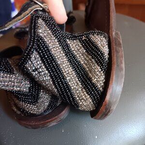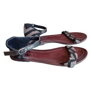 sz 6 Womens Sandals Beaded Leather Ankle Strap By Roper