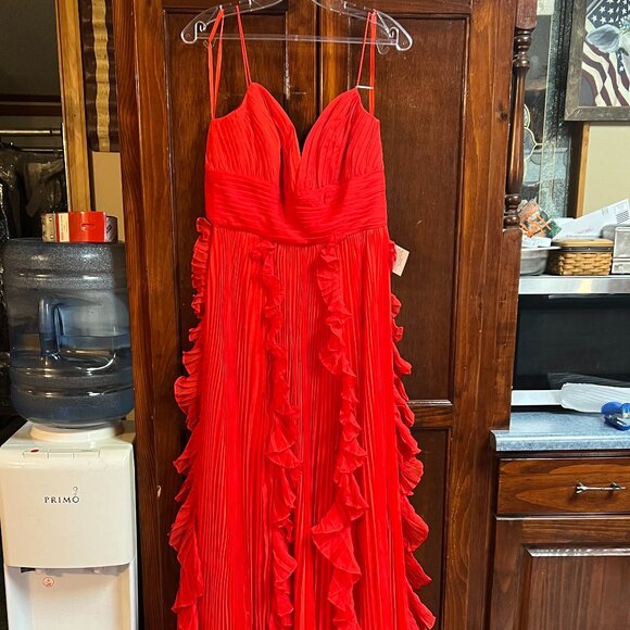 sz 8 Red ruffle tulle gown made by Mac Dugal New with tags