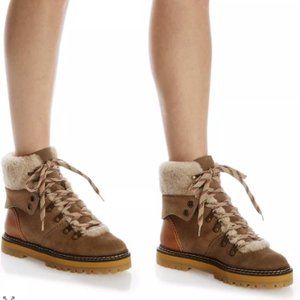 sz US 37, 38 see by chloé Eileen shearling hiker boots MSRP$495 CLEARANCE