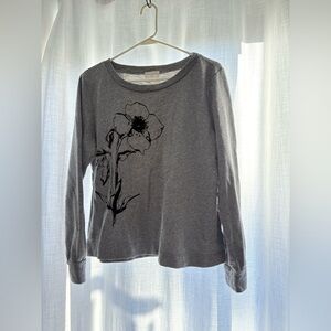 t. la Anthropologie Gray Sweatshirt w/ Black Velvet Flower Detail, Size Small