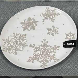 tagltd Falling Snow Platter Winter Gold Snowflake Accented 14-inch Round ~ NWT
