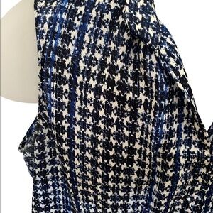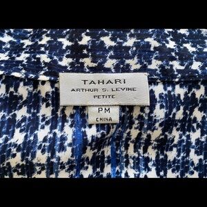 tahari ASL Sleeveless Blue & White Patterned Blouse Top Women PM Petite Medium
