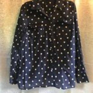 Talbots women's used button down shirt- tag is torn. Blue and white polka dot design. Size small.