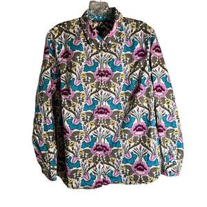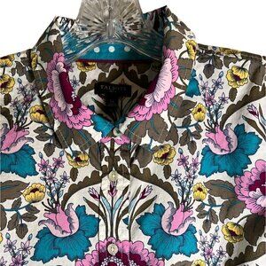 talbots Women's Button Down Blouse Vibrant Floral Pattern Size Large Petite