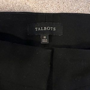Classic Talbots dark blue dress pant, flat front, front zipper, two small placket pockets in back, straight leg. size 10