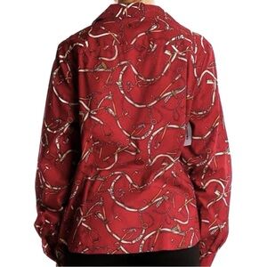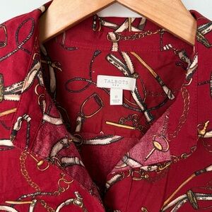 red 98% cotton button down shirt from talbots. allover equestrian print for the horse girl in you.