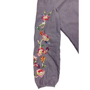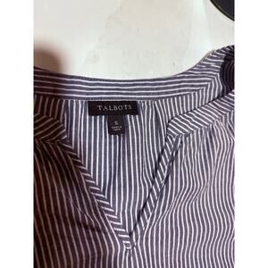Elevate your wardrobe with this charming Talbots striped blouse. This blouse features delicate embroidery on the sleeves, adding a touch of elegance to the classic striped pattern. The size S ensures a flattering fit. Perfect for both casual and semi-formal occasions.
