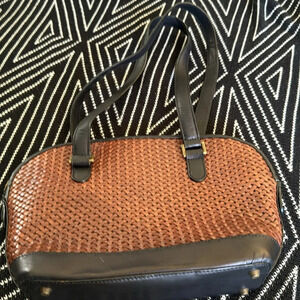 talbots woven leather italian made shoulder bag in chocolate brown and espresso