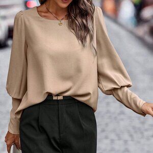tan Elegant Women's Button Back detailed Blouse