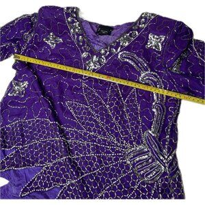 tan chho Women’s 100% Silk Beaded Purple Set Suit Costume Small Vintage 20s