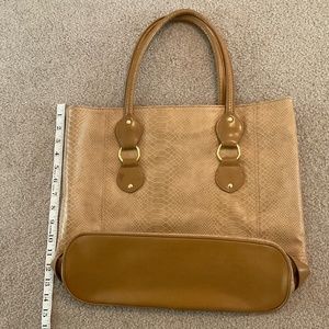 Oh, and this tote does NOT have a zipper closure or snap closure...just letting you know. Just one main compartment area. Excellent; like new condition