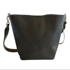 tde. Large Black Leather Shoulder Bag with Wrist Strap