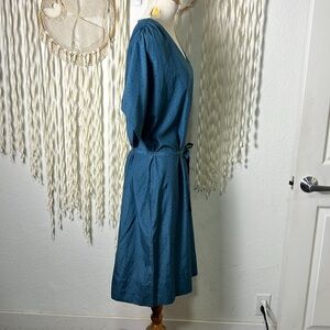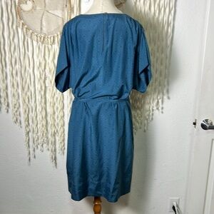 tea Collection NWT Teal Dolman Sleeve V-Neck Silk /Cotton Dress Size Large