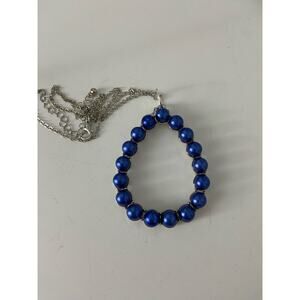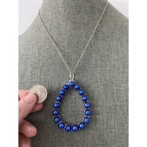 Cute Upcycled summer style blue faux pearl teardrop pendant necklace made with new material chain in good condition great for holidays going out parties gifting work vacation school art deco boho retro twee casual preppy glam grunge coastal grandmother cottage rave sustainable fashion Ravi Star Jewelry