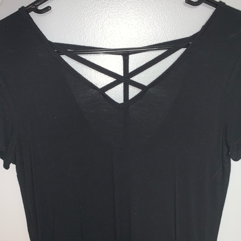 tee that crosses in the front and back