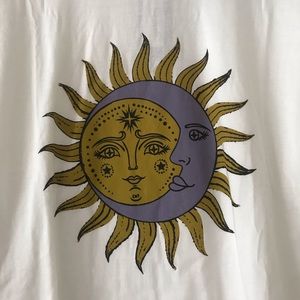 Nasty Gal tee with purple and gold sun and moon design. No trades.