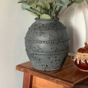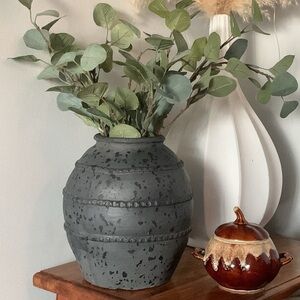 terracotta grace vase art handmade charcoal gray spotted home decor neutral
