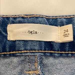 tgla Blue Flare Wide Leg Jeans with Vintage Distressing