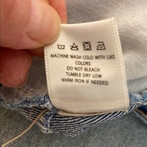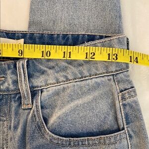 These blue jeans boast a chic flare and wide leg silhouette, ideal for a laid-back yet fashionable appearance. The denim is enhanced with a vintage-inspired distressed finish, offering a unique touch to your ensemble. Made from medium-weight fabric, these jeans ensure both comfort and style.