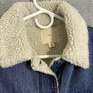 tgla Jean Denim Jacket Womens Large Blue Sherpa Lined Trucker Collar Casual