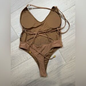 the Matte collection Women Swimsuit L Hi Cut Brown String 1PC medium bathingsuit