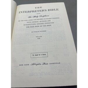 This vintage hardcover edition of "The Interpreter's Bible, Volume 7" from 1951 by Abingdon Press is a collector's item. Ideal for theologians or enthusiasts, it offers timeless biblical insights.