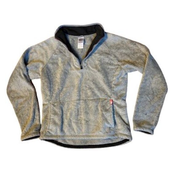 the north face 1/4 zip womens pull over grey medium front pocket fleece