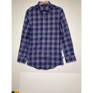 This Savile Row Company button-down shirt in size large, 34-35, features a non-iron slim fit design. Crafted in purple-grey cotton, it seamlessly combines style and comfort.