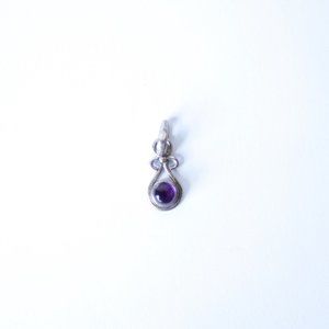 vintage amethyst pendant purchased from a local shop in the 00s. features delicate rounded metalwork and an amethyst at center. silver (not 925 sterling). in vintage condition with wear/tarnish. open to offers!