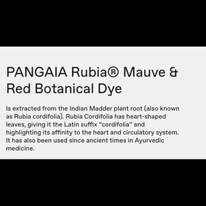 The rubia color was created using Environmentally Friendly Dyes and a recycled water system.