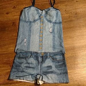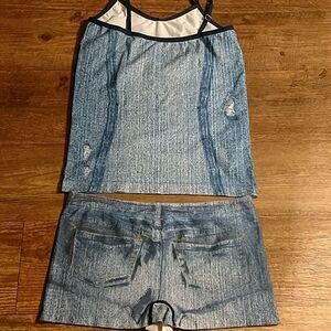 Super cute pajamas that look like denim made of stretchy material boy shorts with spaghetti tank top no boundaries Juniors medium